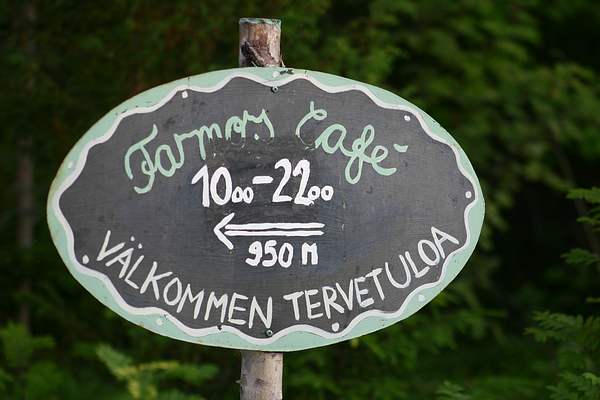 Kejsarshamnenin rannassa oli selkeä opaskyltti kahvilaan... matkan pituus tuntui paljon pidemmälle sinne kävellessä - säällä lienee osuutensa asiaan.