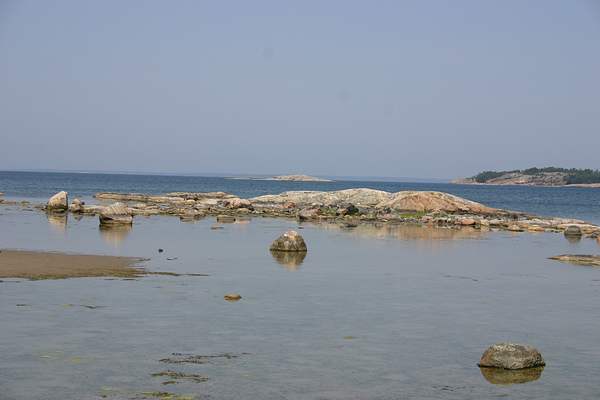 Helsingholmin luoteinen ranta oli kallioinen ja osin melko matala - tästä oikealle on saunalahti.