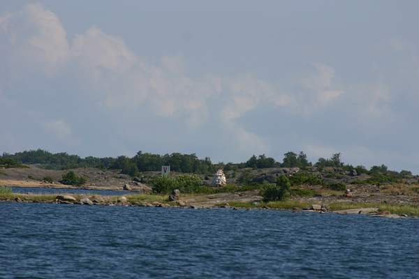 Amborsö. Tämän takana reitti erkani Karlbyn satamaan menevään ja alas etelää ja myöhemmin kohti kaakkoa ja Utötä kääntyvään reittiin.