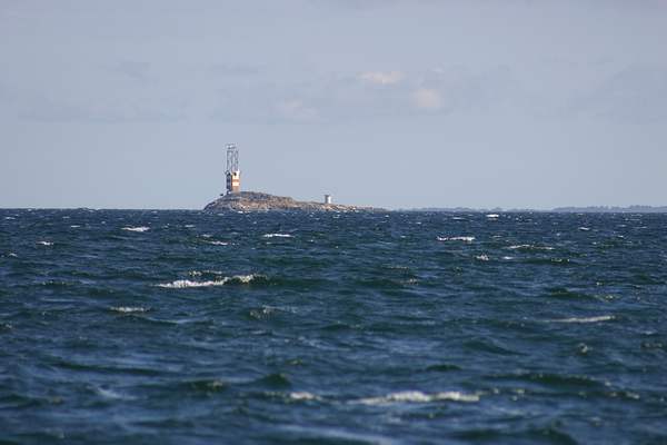 Kesän 2006 purjehduskuvia Aallokko alkoi jo nousta ja tuuli oli kääntynyt puhaltamaan enemmän pohjoisesta levättyään yhden päivän luoteenpuolelta puhkuttuaan toissapäivänä urakalla. Tästä päivästä tulisi vieläkin tuulisempi.