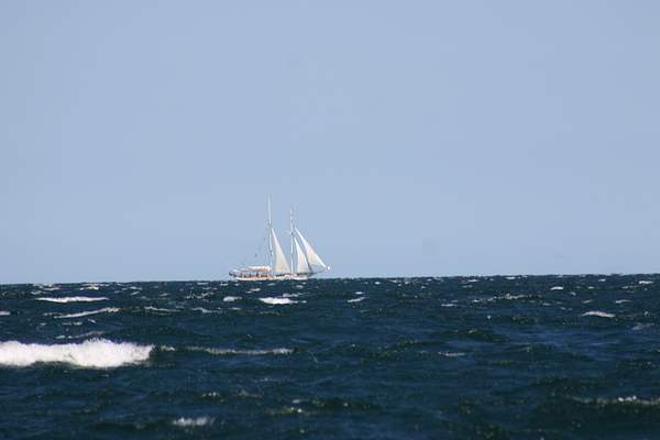 Kesän 2006 purjehduskuvia Tässä kohtaa reittimme kääntyi enemmän itään ja tietty tuuli alkoi olla kovimmillaan, aallot korkeimmillaan ja takana kuunari Helena matkalla kohti itää. Me vedimme genoaa vuoroin sisään, vuoroin vapautimme sitä enemmän ja lopulta kun matka kulki suoraan sivuaallokossa jätimme pienen läpäreen genoaa tasaamaan kulkua aallokossa ja laitoimme koneen puskemaan eteenpäin. Vauhti nousi liki yhdeksään solmuun parhaissa surffeissa. Tuulta oli luvattu 16m/s - puuskissa se toi pärskeitä aaltojen harjoista silmille joten taisi nousta välillä 18:aan m/s. Ohlson kesti mainiosti ja mekin totuimme keliin. Tosin näin ulkona, kun ei kivistä ollut huolta ei myöskään ollut suurempaa vaaraa. Pahimmat vaarat olivat Jurmon kohdalla vastaan tulleet pari moottorivenettä jotka leikkasivat keulamme edestä keli huomioon ottaen turhankin läheltä. Molemmat veneet kääntyivät aallokossa pompittuaan takaisin Jurmon suojiin. Tänä päivänä näimme yhteensä seitsemän muuta alusta: yksi purjevene lähti jäljestämme Kökarista kohti pohjoista, kaksi vuorolauttaa, kuunari Helenan, yhden konttialuksen ja nuo kaksi moottorivenettä. Matka Kökarista Trunsön laituriin kesti n. seitsemän tuntia.