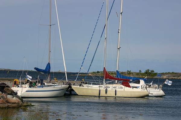 Kesän 2006 purjehduskuvia Trunsö. Koitimme ensin mennä ankkuriin laiturin pohjoispuolelle. Kaarsimme hieman pitkälle kaislikon rantaan ja jäimme pohjaan kiinni. Siitä selvittiin konetta käyttämällä ja tovin temppuiltuamme laskimme ankkurin vasten tuulta ja kiinnityimme laiturissa jo olleiden veneiden väliin.