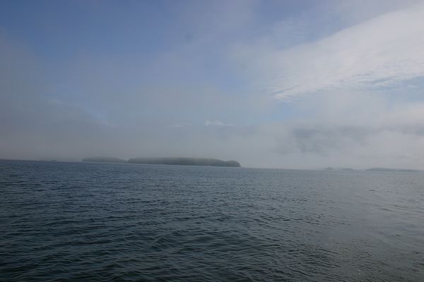 Käännyttyäni seuraamaan veneilyväylää kohti länttä alkoi sumukin hälventyä tuulen noustua - taas pääsi purjehtimaankin.