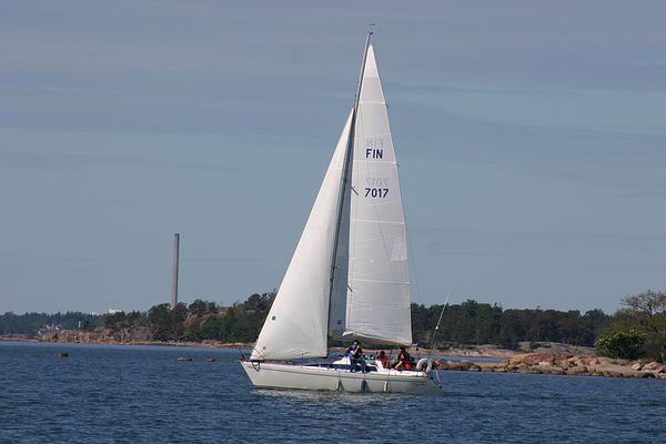 Kesän 2006 purjehduskuvia Sumujen hälvennyttyä, muutaman viikon kuluttua lähdimme työporukalla purjehtimaan - kahdella meistä kun oli vene. Tässä x-kollegan Artina 29, s/y Nanuska HSK:n satamasta - tyylikkäästi fendarit ulkona.