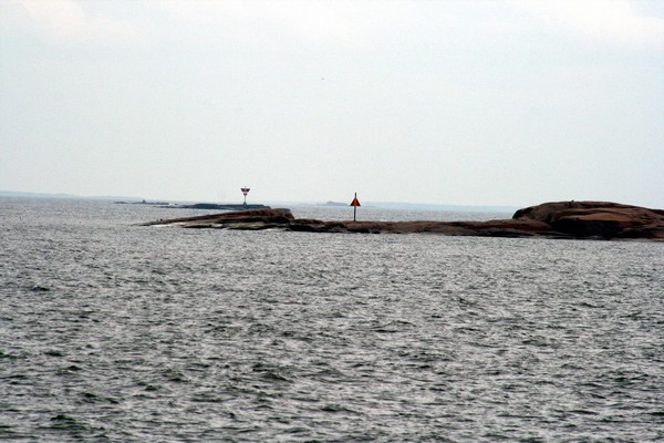 Morgonlandetin länsipuolella oli linjamerkkejä, jotka ilmeisesti on pystytetty rantautumista avittamaan.