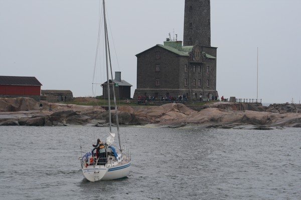 Poislähtiessämme majakkasaarta lähestyi purjevene aikeissaan rantautua samaan kohtaa, jossa yhteysalus oli ollut.