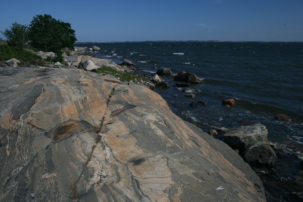 Vänön itärannalta löytyy myös saaristomerelle tyypillistä kalliorantaa, vulkaanisia kivilajeja graniitin seassa.