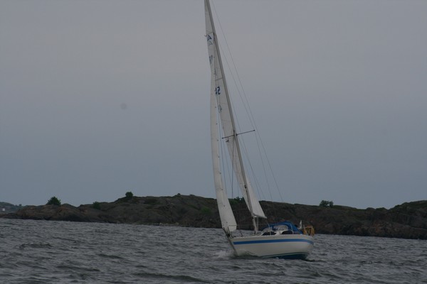 Kesän 2007 purjehduskuvia Vähitellen alkoi vastaankin tulla veneitä - tässä vaiheessa tuuli oli kääntynyt jo hieman enemmän sivulle. Näin molempiin suuntiin väylää purjehtivat pääsivät laskettelemaan yhdellä halssilla suuntaansa.