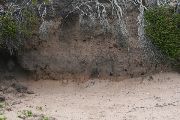 Jurmon maasto oli tosiaan vaihelevaa, niittyjä, kallioita, nummimaisemaa, hienohiekkaisia pälviä santaseinämien reunustamina - tuossa luultavasti törmäpääskyn pesäkoloja.