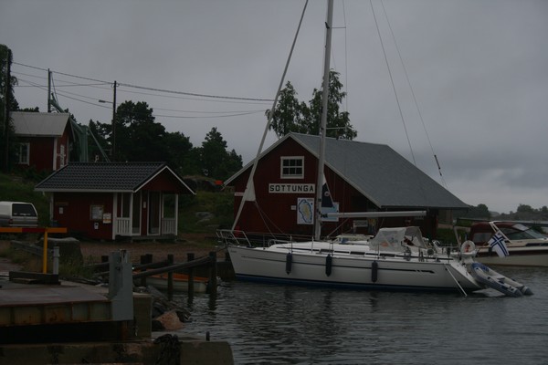 Kesän 2007 purjehduskuvia Sottungan lauttalaiturin länsipuolellekin pystyi kiinnittymään. Satamakonttori on tuossa kuvassa vasemmanpuoleinen pieni mökki mäenpäällä. Satamasta sai ilmaiseksi lainata polkupyöriä, joilla pääsi kätevästi n. kolmen kilometrin päähän kauppaani.