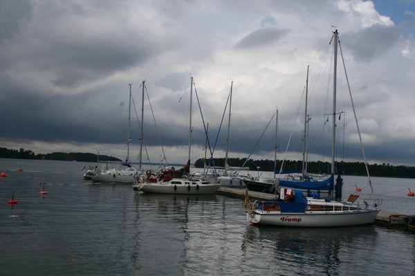Kesän 2007 purjehduskuvia Saavuin Degerbyn satamaan taas aika hyvään aikaan, tilaa oli varsin hyvin ja moni lähti vielä saavuttuani eteenpäin. Tuo ensimmäinen vene oli saksasta - hyvin pitkälti FE83:n näköinen konstruktio. Sitä purjehtinut kaveri auttoi minut satamaan ja rupatteltiin jonkun verran laiturilla myöhmminkin.