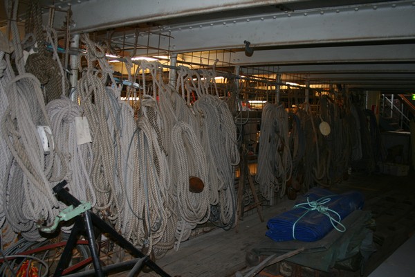 Kesän 2007 purjehduskuvia Pommernin ruumassa oli näyttely, jossa kerrottiin viimeisimmästä matkasta Australiaan ja takaisin. Mielenkiintoinen tarina jota avustivat laivan vanha rekvisiitta - tässä köysinippuja (ehkä eivät kuitenkaan ihan alkuperäisiä).