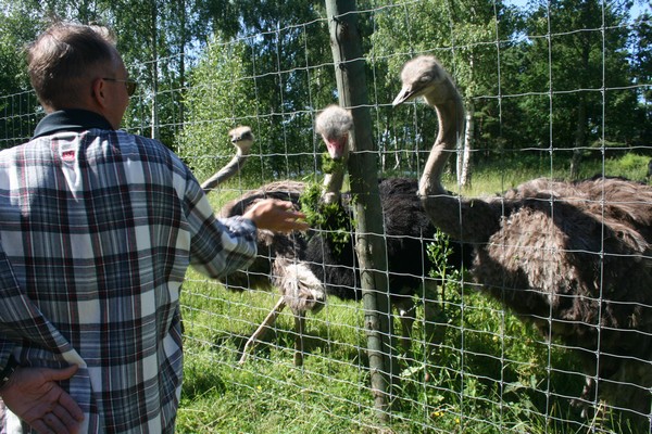 Ja lopulta ne strutsit. Ruokimme niitä ruohosilpulla - tässä Markun tyylinäyte.