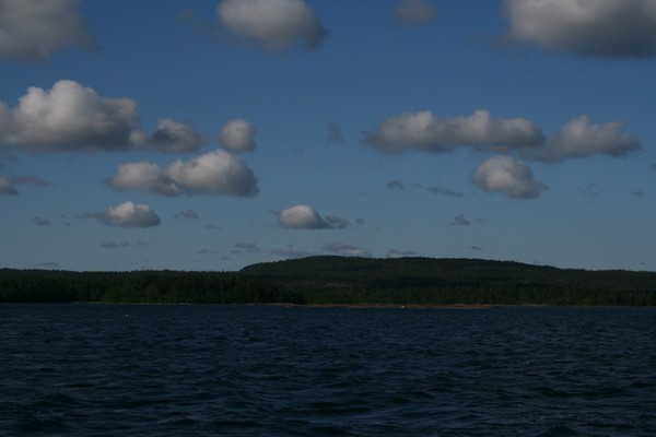 Simskälälafjärdenin yllä pilvet olivat kuin pumpulipalloja.