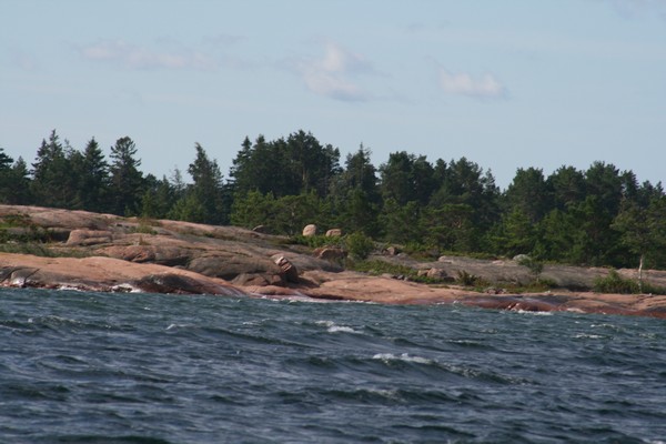Simskalafjärdenin itäpäässä tuuli nousi entisestään ja tuli puuskaisemaksi nostaen pieniä vaahtopäitäkin.