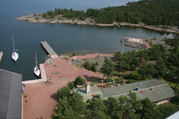 Kesän 2007 purjehduskuvia Bärön satama alkoi täyttyä hiljakseen. Meidän tullessamme satama oli tyhjä ja satamanhoitaja ohjasi meidä tuohon paikkaamme. Myöhemmin saimme kylkeemme kaksi muuta alusta. Niiden miheistöt nousivat auttamaan meitä irti aamusta omien köysiensä lomasta kahdeksan pintaan. Ravintola Glada Laxenin (tuo iso rakennus, myös satamakonttori) ruoka oli erinomaista ja palvelu loistavaa. Lisäksi satamassa myytiin lämpimiä, tuulenpitäviä villapaitoja joista yksi tarttui minunkin matkaani.