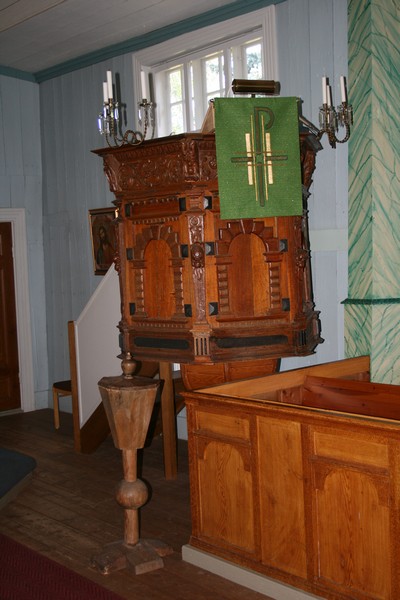 Houtskarin kirkon saarnastuoli.