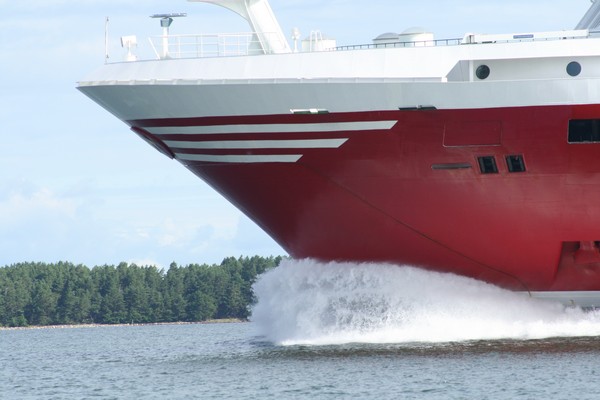 Tuo keula-aaltokin ylsi puoleenväliin mastoa. Onneksi ehdimme alta pois hieman leveämmälle väylän osalle.