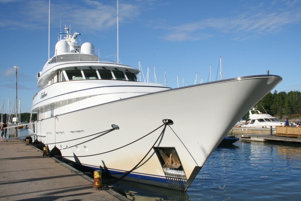 Kesän 2007 purjehduskuvia Aika hulppean näköinen, joka paikka kiilsi ja kromi häikäisi silmiä. Huhut mukaan omistaja olisi Harrodsin omistaja brittiliikemies, Al Fayed, mutta varmuutta tälle ei saanut.
