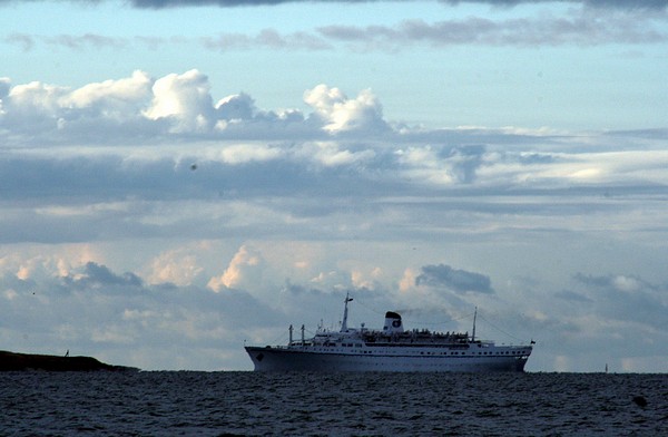 Ensimmäinen vastaantuleva laiva oli ulkomainen risteilyalus joka toi turistit kartuttamaan Helsingin kassaa.
