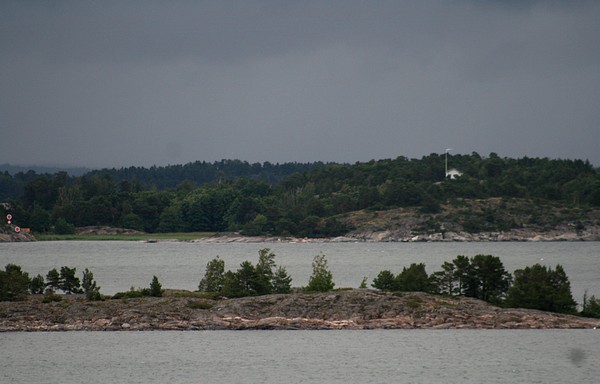 Maisemaa Stenskärin korkeimmalta kalliolta koilliseen. Gullkronan luotsimökki näkyy hyvin.