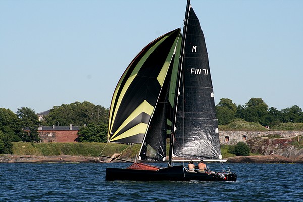 Pihlajasaaren ja Suomenlinnan väliä purjehti musta katamaraani.