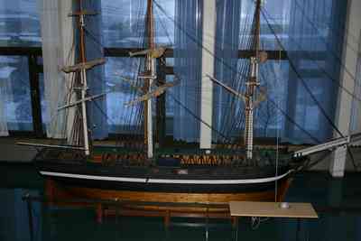 Merenkulkuopiston rappusissa oli upea purjelaivan pienoismalli - itseasiassa melkein ihmisen purjehdittavan oloinen laiva.