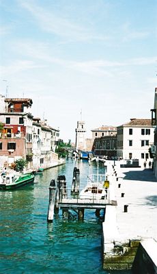 La Serenissima, Venezia.. Tämän kanaalin päässä häämöttää telakka-alue, Darsena Arsenale, joka on yksi Venezian Biennalen päänäyttämöistä - ainakin oli silloin kun 2001 sinne yritin päästä ihmettelemään sen kertaista näyttelyä.
