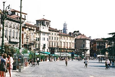 Verona Kun saapuu Veronaan julkisilla kulkuvälineillä, junalla tai bussilla tulee melko väistämättä sisään vanhasta kaupungin muurissa olevasta portista. Siitä läpi käytyään kohtaa Arenan vieressä olevan piazzan jonka varressa on monia tasokkaita ja aika kalliitakin kahviloita sekä ravintoloita.