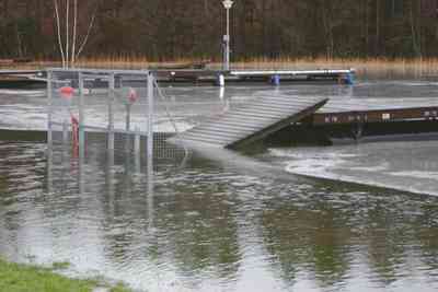 Laitureiden rampit olivat myös nousseet veden tahtiin.