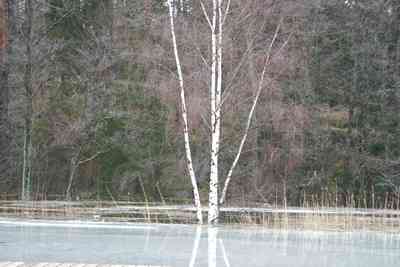 Vastapäisellä rannalla koivu on saanut juurihoitoa kunnolla.