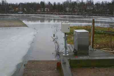 Laituri / penger jatkuvat tuosta vielä vedessä kelluvan laiturin oikeaan kulmaan saakka.