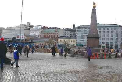 Kauppatorilla oli ihmisiä, paperipaaluja ja vettä..
