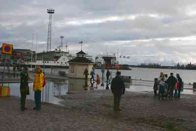Katajonokalle menevä kävelytie/silta oli melkein kokonaan veden alla sekin.