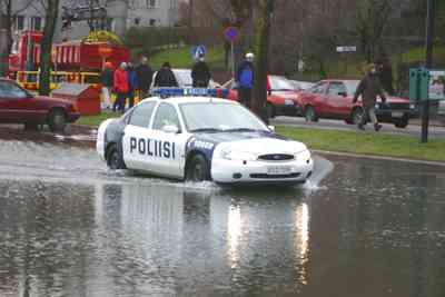 Alustan pesu poliisautolle Haaksirikkoisten patsaan parkkipaikalla.