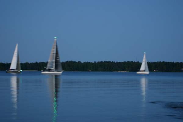 Vähitellen yö alkoi hieman kirkastua, mutta silti vielä pidemmät valotusajat saavat kuvat valitettavan epätarkoiksi - eivät suostuneet veneet pysähtymään kuvauksen ajaksi.